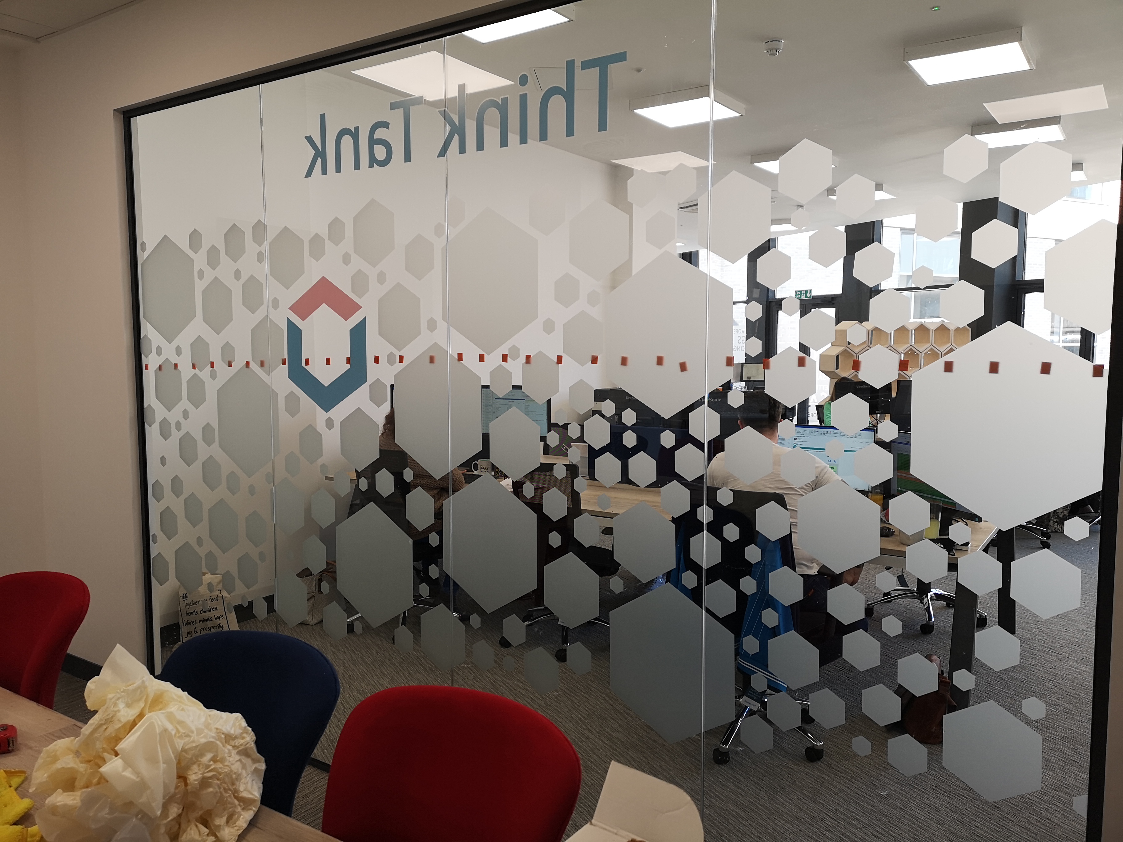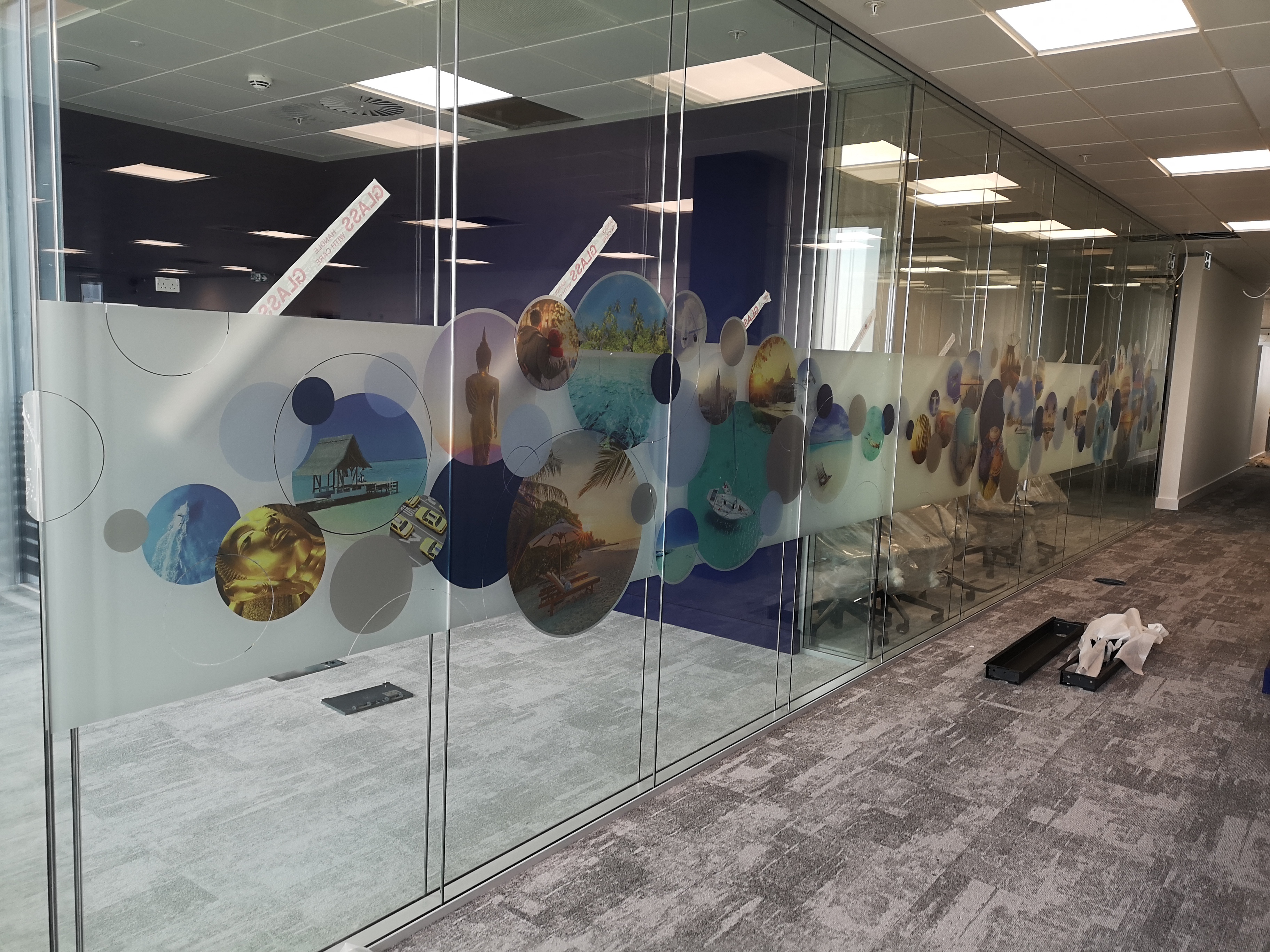 - Complying with health & safety regulations by making glass doors & partitions more visible by using repeat patterns or logos.
